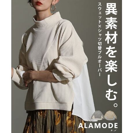 フロントは微起毛スウェット、バックは布帛シャツに切り替えたプルオーバー。異素材のコントラストがさりげなく効いて、着るだけでこなれた印象に。ラフさときちんと感をバランスよく楽しめる一枚です☆