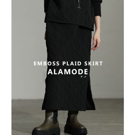 立体感のあるエンボス格子模様が目を惹くスカート。シンプルなトップス合わせでも存在感があり、コーデに自然な奥行きをプラスします。almam-1767トップスと合わせれば、こなれたセットアップスタイルも楽しめます☆