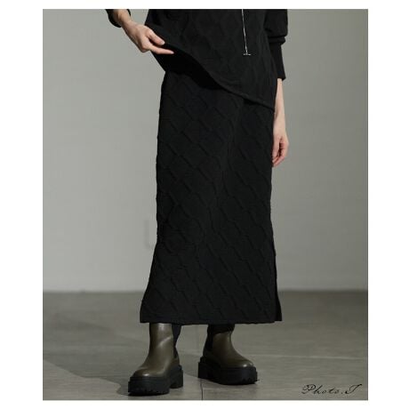 マルイウェブチャネル   /   サワアラモード   /   すべてのスカート   /   スカート   /   【スカート】 格子柄 エンボス 立体 サイドスリット ロング ウエストゴム ドロスト ブラック 黒