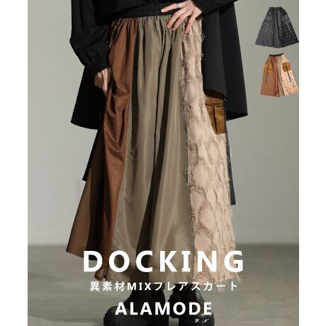 マルイウェブチャネル   /   サワアラモード   /   すべてのスカート   /   スカート   /   【スカート】 異素材 フレア シャギー メッシュ カーゴ ポケット ロング ウエストゴム 黒 茶色