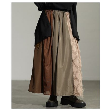 異素材を組み合わせた、表情豊かなフレアスカート。生地ごとの風合いが動くたびにニュアンスを生み、コーデに奥行きをプラスします。ウエストゴム仕様で穿き心地も快適、毎日つい手に取りたくなる一枚です☆
