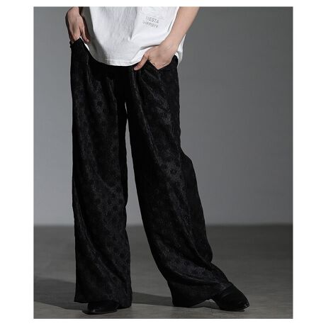 エンボスドットの表情豊かな生地が目を惹くイージーパンツ。立体感のある表面感がシンプルなコーデにも程よいアクセントを添えます。プリーツベースで穿き心地もよく、ラクなのにきちんと見える一本です!