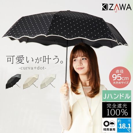 マルイウェブチャネル   /   KIZAWA   /   傘・レイングッズ   /   日傘   /   日傘 折りたたみ傘 軽量 完全遮光 UVカット100% 晴雨兼用 雨傘 curva+ dot