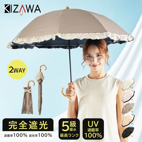 マルイウェブチャネル   /   KIZAWA   /   傘・レイングッズ   /   日傘   /   2段式 折りたたみ傘 日傘 完全遮光 UVカット100% 晴雨兼用 長傘 nino frill