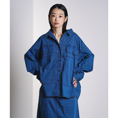 ワークポケットが映える、リップストップ素材のゆったりシャツ