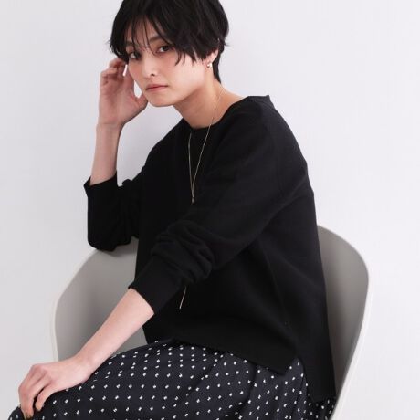 ・ボートネックは鎖骨を美しく見せ、首回りから肩回りへの自然なデザインがすっきり見せてくれます。