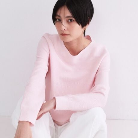 ・ボートネックは鎖骨を美しく見せ、首回りから肩回りへの自然なデザインがすっきり見せてくれます。