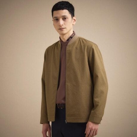 ストレッチ、マシンウォッシャブルといった多機能のカルゼ素材を使用したリブブルゾン。