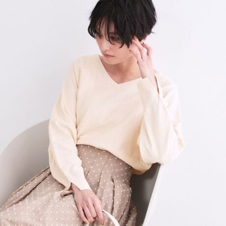 リラクシーなドルマンスリーブが抜け感のあるVネックニット