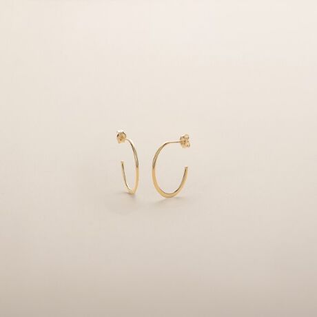 丸線をつぶし、オーバルフォルムに仕上げたフープピアス。