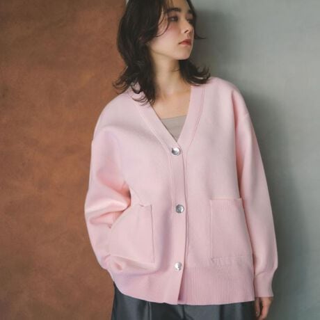 ・シンプルなVネックデザインで着こなしの幅が広がるニットカーディガン。