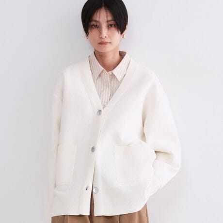 ・シンプルなVネックデザインで着こなしの幅が広がるニットカーディガン。