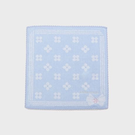 幾何柄調に並んだお花に右下のリボンがかわいらしいタオルハンカチです。