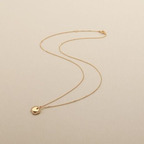 縁にダイヤモンドをあしらった隅切りデザインのプレートネックレス。