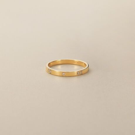 繊細な彫り留めでダイヤモンドを配したオルタネートリング。