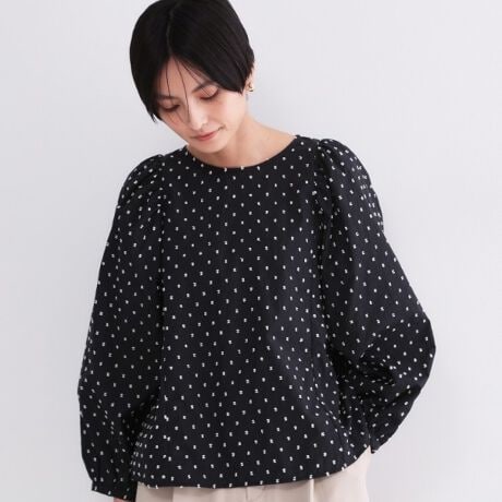 ・ドビードットの素材感を活かした、華やかなパフスリーブブラウス。