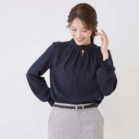 ほんのり肌見せの衿元のキーネックがアクセントになります。