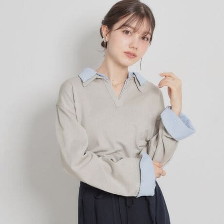 シャツをレイヤードしたようなドッキングニットプルオーバー。