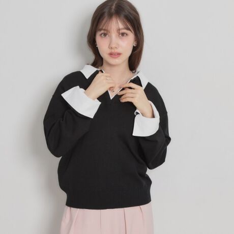 シャツをレイヤードしたようなドッキングニットプルオーバー。