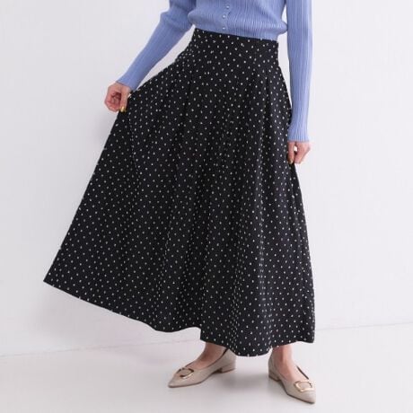 ・ドビードットの素材感を活かした、タックデザインフレアスカート。