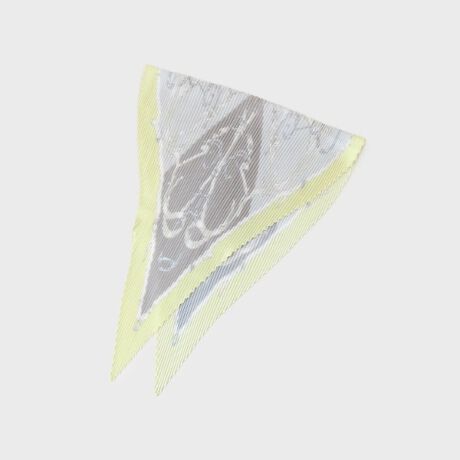 プリーツ加工が施されたスカーフは、エレガントなチェーン柄が特徴。