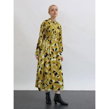 緻密なディティールを施されたAgaこだわりのプリントワンピース。ウエストのドロストをお好みで絞ってすっきりと自然なスタイルアップを叶えます。シャープな顔周りを演出する高めの襟元はフロントを比翼仕立てですっきりと仕上げているためニットなどとのレイヤードスタイルも様見え。シーズンを通して着こなしをお楽しみいただける、大人のプリントワンピースです。