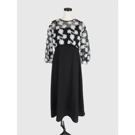 繊細なチュール素材に立体的なフラワーモチーフをあしらったボレロと、美シルエットなキャミワンピースがセットになったワンピース。
