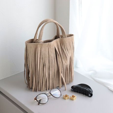 柔らかなスエード生地のフリンジミニトート