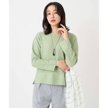 無地感覚で使えて着回しの効く、春カラーのニットプルオーバー