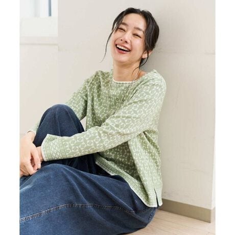 ・細かな柄が再現できるハイゲージの編機で、まだ寒い季節から着られる、ほどよい肉感のニットに仕上げています。