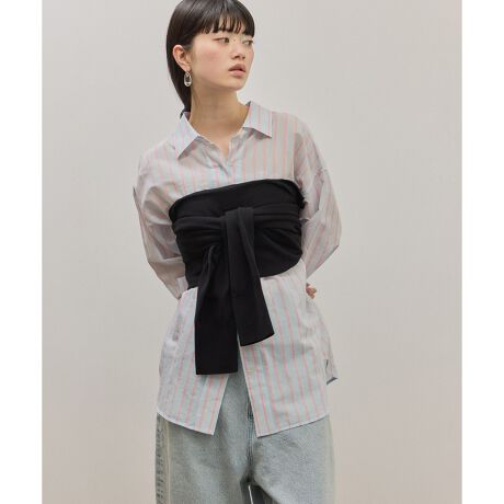 シャツやTシャツなどの上にビスチェのように巻いて着用するのがおすすめ。