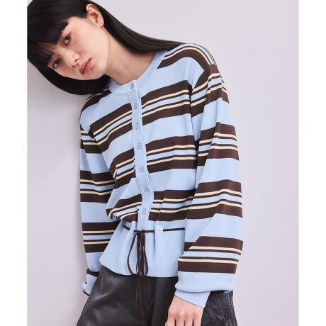ウエストに通した紐により、ストンとしたシルエットやペプラムシルエットと、スタイリングに合わせたシルエット変化を楽しめるカーディガン。