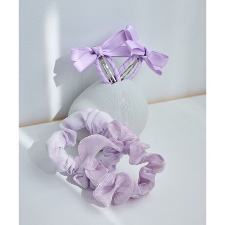・細巾のシュシュが2つとリボンピンが2つセットになったヘアアクセサリー。
