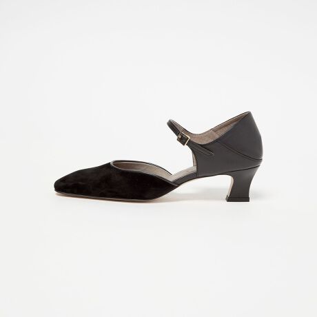 ブラックは前部分にスエード素材を使用、ベルトのバックルはライトゴールドカラー。