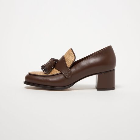大ぶりのタッセルが目をひく素材コンビのローファーパンプス