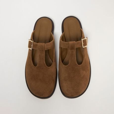 Tストラップのミュールフラット