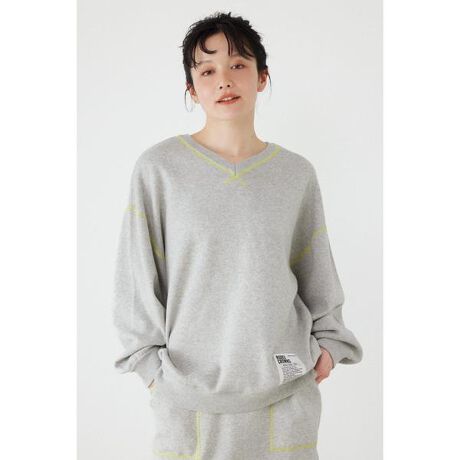 ■ポイントVネックとクルーネックを2wayで楽しめ、配色ステッチやオリジナルネームを施し、スウェットのような感覚で気軽に着ることができるニットトップス。■ディテール配色ステッチやオリジナルネームを施しています。■スタイリングシンプルなので、女性らしいタイトスカートやメンズライクなワイドパンツとも相性抜群。同素材で展開しているスカート(420JSH71-0241 スウェットライクサイドステッチニットスカート)とのセットアップでの着用もおすすめです。■生地※マシンウォッシャブル可能商品※ONE&ONLYタグ付きコットンアクリルの柔らかい素材に、ポリエステル素材をプラスし、ドライ感を出し梅春でも長くサラッと着られるようにブラッシュアップしています。■透け感:なし■裏 地:なし■伸縮性:ややあり■光沢感:なし※お取り扱い上のご注意ハンガー掛けの際に襟元などが伸びます。サイズ違いの原因にもなりますので、こまめにハンガーから外すなどご注意下さい。ピリングなどが発生した場合は、はさみなどできれいにカットしてください。[注意事項]※画像の商品はサンプルです。実際の商品と仕様、加工が若干異なる場合があります。※画像の商品は光の照射や角度、お使いのモニター環境により、実物と色味が異なる場合がございます。※着用、お取り扱いの際は、アテンションタグをご確認ください。