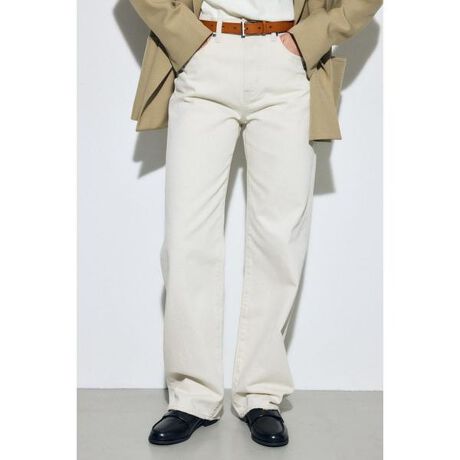 ■AZUL DENIM ストレートデニム■ポイントシルエットにこだわり、はくだけでスタイルアップが叶うストレートデニム。■ディテール太すぎず細すぎないストレートラインが脚のラインをきれいに見せ、自然な縦のラインを強調。腰まわりは程よくフィットさせつつ、太ももから裾にかけてすとんと落ちるシルエットでバランス良く仕上げています。股上は安心感のある設計で、トップスインもしやすいデザイン。デニム特有の程よいハリ感があり、カジュアルながらもすっきりとした印象で着用できます。■スタイリングシンプルなTシャツやニットと合わせるだけで、デニムを主役にしたスタイリングが完成。足元はフラットからヒールまで幅広く相性が良く、オンオフ問わず活躍します。■生地12oz ノンストレッチデニムを使用。透け感:なし裏 地:なし伸縮性:なし光沢感:なし[注意事項]※画像の商品はサンプルです。実際の商品と仕様、加工が若干異なる場合があります。※画像の商品は光の照射や角度、お使いのモニター環境により、実物と色味が異なる場合がございます。※着用、お取り扱いの際は、アテンションタグをご確認ください。