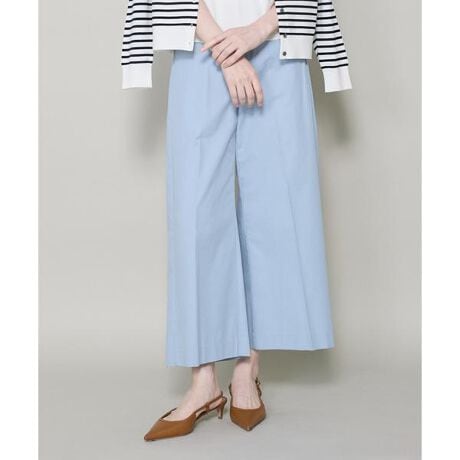 ■デザインワイドシルエットのクロップドパンツ。センタープレスを入れる事で縦のラインに立体感を持たせ、スタイルアップ効果も叶えます。ウエストは後ろ部分のみゴムイン仕様なのも嬉しいポイントです。クロップドのワイドシルエットで足元の風通しも良く、夏まで活躍するアイテムです。■素材ヨコ糸に強撚綿を使用することにより膨らみ感と締まり感の両方を表現したチノ素材です。適度なハリ感があり、強撚糸を使用する事できれい見えな表情を演出し、綿特有の肌ざわりと着心地の良さが特徴です。・水洗い可・ポケットあり・ウエスト後ろ部分ゴム仕様同素材のストレートパンツ品番:10-61161017 ■サンプル撮影商品画像の商品はサンプルです。実際の商品とはサイズや色味、素材、デザイン等の仕様が若干変更になる場合がございます。■照明の関係により、実際の製品とは色味が違って見える場合があります。またパソコン・スマートフォンなどの環境により、若干製品と画像のカラーが異なる場合もございます。■サイズ表記はあくまで目安となります。
