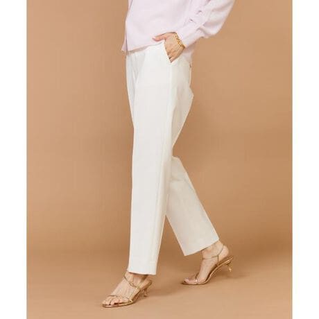 ■デザイン裾に向かってテーパードラインのついたキレイめパンツです。センターシームが足をまっすぐ長く見せてくれます。オンオフの境が曖昧になった今どきのおしゃれ感にマッチし、すっきりとスタイルアップを叶える定番の1着です。■素材ポリエステルのストレッチ糸を丁寧に織りあげ、染色後肌触りが良くなる用に仕上げています。・水洗い可・オフホワイトのみ裏地あり・後ろウエスト一部ゴム仕様■サンプル撮影商品画像の商品はサンプルです。実際の商品とはサイズや色味、素材、デザイン等の仕様が若干変更になる場合がございます。■カラーについては、可能な限り実際の商品に近いカラーで撮影をおこなっておりますが、照明の関係により実際の製品とは色味が違って見える場合があります。またパソコン・スマートフォンなどの環境により、若干製品と画像のカラーが異なる場合もございます。現物と画像のカラー差異については返品理由となりませんので、予めご了承ください。■サイズ表記はあくまで目安となります。