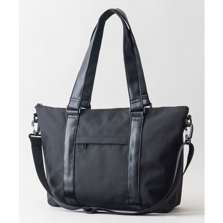 ・合成皮革をハンドル部分にあしらう事でカジュアル感を押さえ、上品な仕上がりにしております。撥水ポリエステル生地を使用しているので、水や汚れの付着を防いでくれることで通勤や通学など天候を気にせずご使用頂けます。