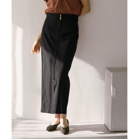 フロントジップのデザインがアクセントになったタイトロングスカート。