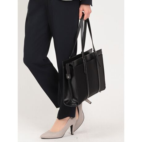 A4ファイルが余裕で入るレクタンブル(長方形)タイプで、書類や手荷物もたっぷり収納可能です。底鋲付きで自立するので安定感が増し、型崩れを防ぎます。