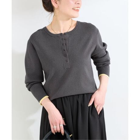 ヘンリーネック仕様で、抜け感のあるこなれたスタイルができます。適度なゆとりがありつつもオーバー過ぎないバランスの良いシルエットで、どんなテイストにもマッチします。デイリーに取り入れやすく、1枚で今っぽく仕上がる万能ニットです。