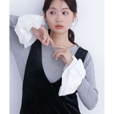 布帛のフレアカフスがポイントのカットソー。コンパクトなシルエットが、ジャンスカとのレイヤードにもおすすめ。トレンド感のあるデザインで、今年らしいスタイリングを叶えてくれます。布帛のフレアカフスと組み合わせることで、着心地の良いカットソーも品の良い表情をプラス。シンプルながらディテールに差がつく、一枚持っていると便利なアイテムです。<素材>柔らかく肌ざわりの良いカットソー素材を使用しています。<詳細>仕様・開閉なし裏地・なし透け感・なし / 光沢・なし / 伸縮性・あり 生地の厚さ・普通※モデルの着用画像の場合、光の当たり具合により、実際の色味と異なって見えることがございます。色味は、商品単体の画像をご参照ください。