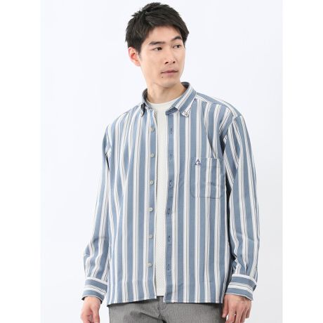 ストライプ柄で爽やかなな雰囲気に仕上げた、ボタンダウンの長袖シャツです。左右前身頃にパッチポケットを配してアウターライクに仕上げています。左胸ポケット上部にあしらったブランドロゴの刺繍がアクセント。タウンユースからアウトドアまで幅広いシーンに大活躍してくれます。