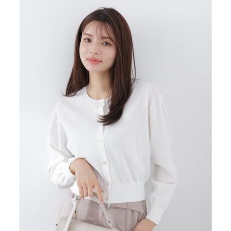 さらっとした糸を使用したベーシックなカーディガン。フラワーモチーフのような釦がアクセントになります。前開き仕様でトップス風に着回せるデザイン。スカートからパンツまで合わせやすく、ONにもOFFスタイルにも活躍してくれます。
