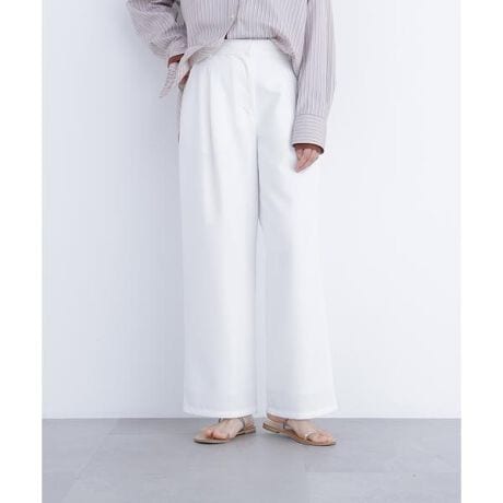 キレイめにもカジュアルにも着回せる万能さ、オンオフ問わずに活躍してくれるワイドパンツ。ゆったりとしたワイドシルエットで体型カバーしつつ、リラックスした大人のカジュアルスタイルを演出します。シンプルなデザインなのでトップスを選ばず、デイリーの定番として幅広いコーディネートに着ていただけます。<素材>さらりとした肌触りの良いツイル素材を使用しています。<詳細>仕様・前ファスナー裏地・オフホワイトのみあり透け感・ややあり / 光沢・なし / 伸縮性・なし 生地の厚さ・普通※モデルの着用画像の場合、光の当たり具合により、実際の色味と異なって見えることがございます。色味は、商品単体の画像をご参照ください。