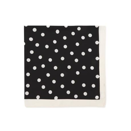 旬なスタイルに見せてくれるドット柄スカーフ。クラシカルなドット柄がキャッチーなアイテムです。首に巻いたり、バッグの持ち手に結んだり、ヘアアクセサリーとして取り入れるなど、様々なアレンジが楽しめます。