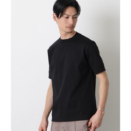 ドレスシーンにマッチする人気カットソーシリーズ「FORMAL JERSEY」から半袖のモックネックTシャツ。スリムシルエットながらも伸縮性のある生地で着心地抜群な一枚です。